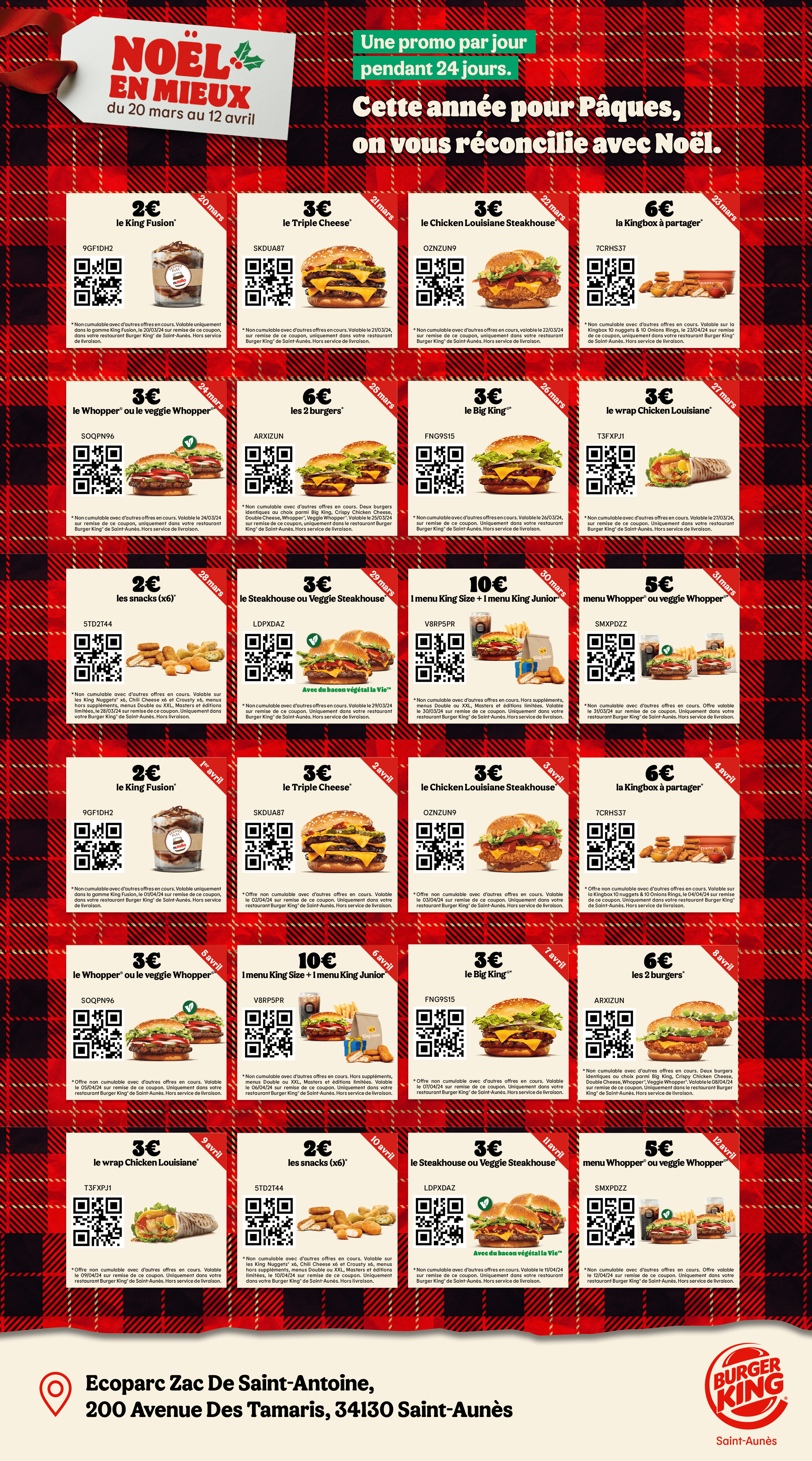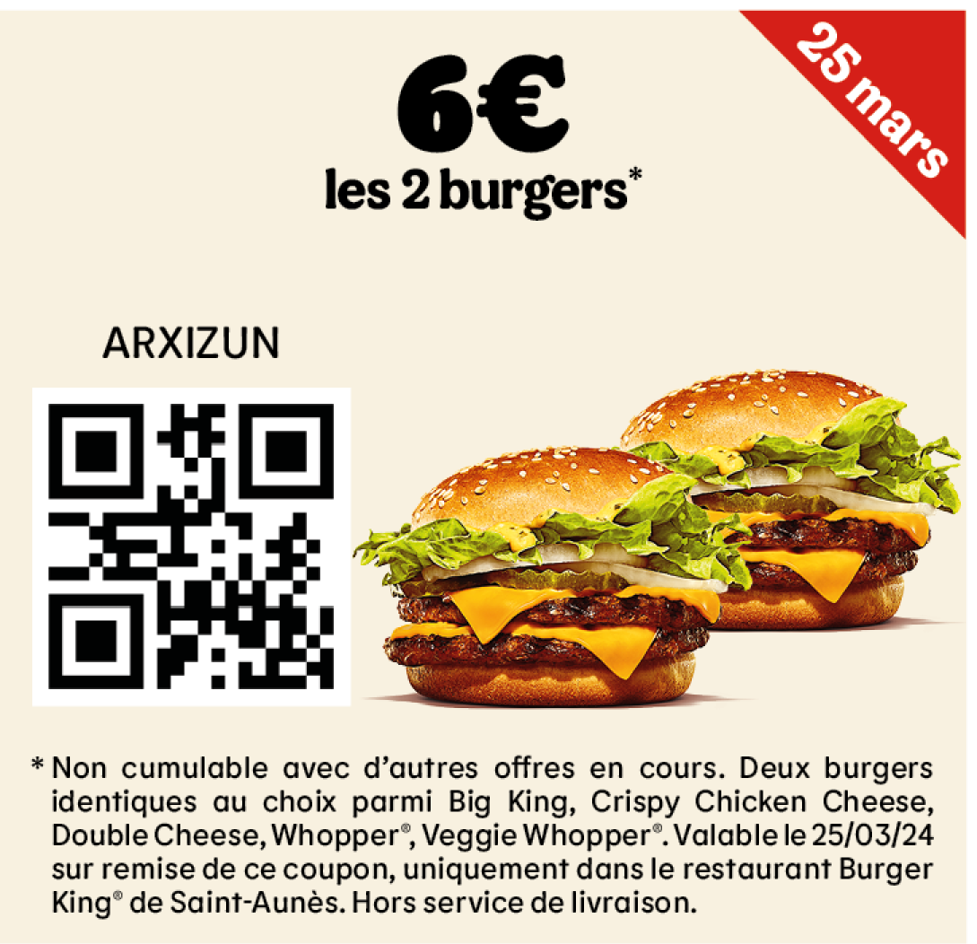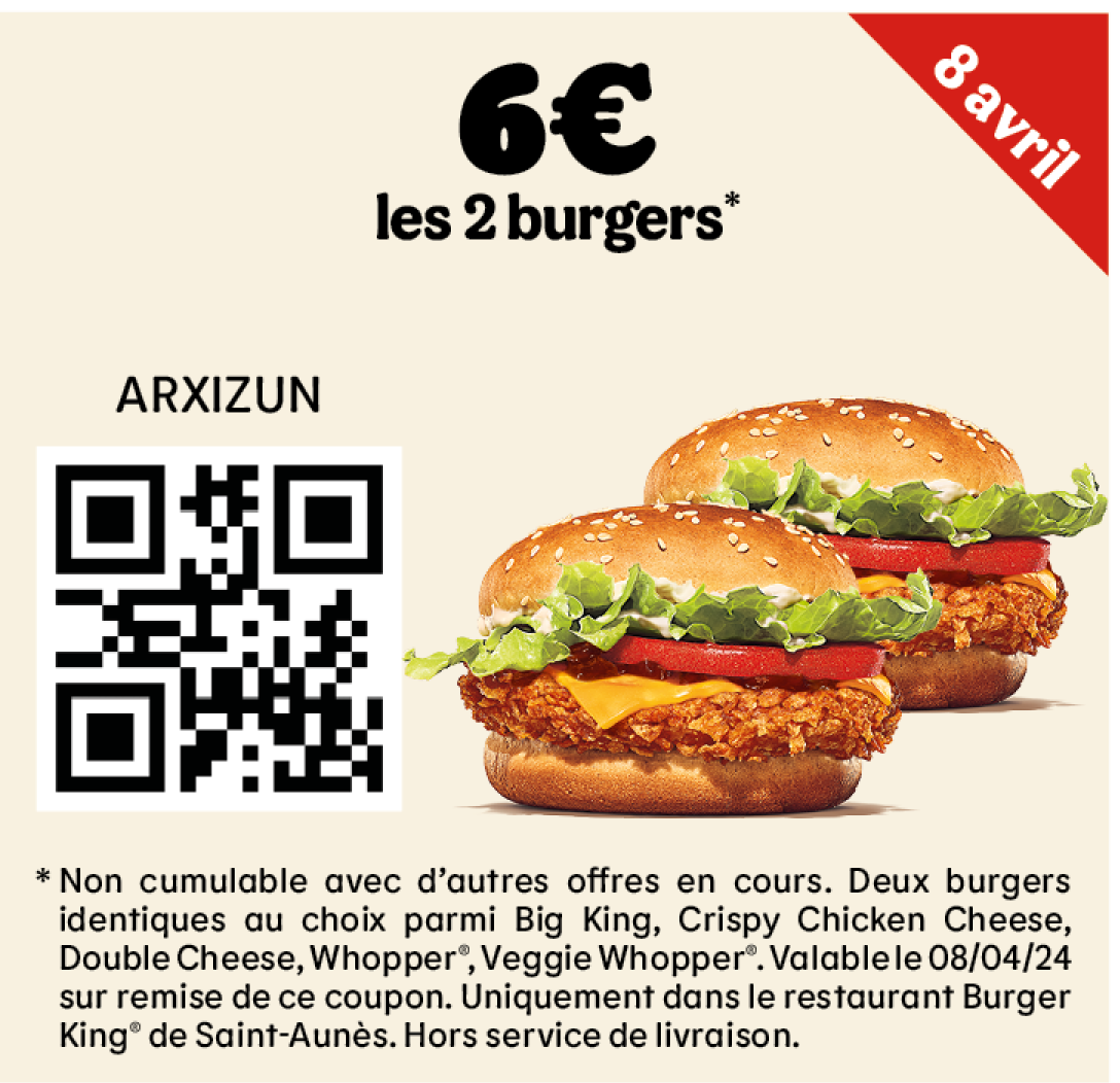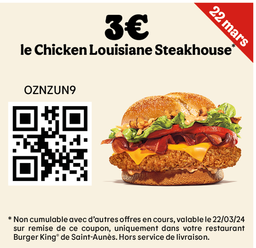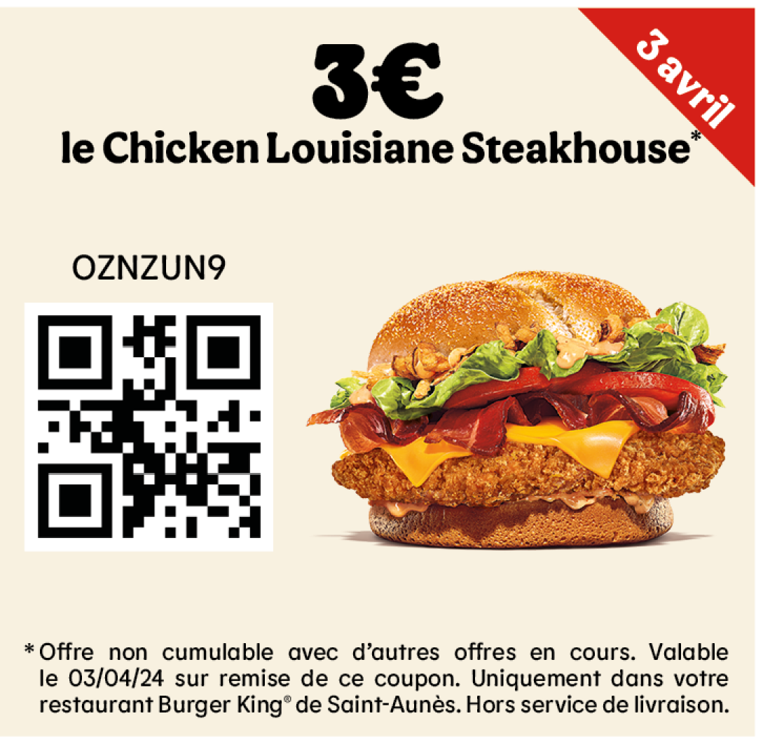 * Un expresso, un café allongé ou un thé offert selon les disponibilités. Offre valable pour toute commande supérieure à 1€ en King Table. Offre non cumulable, valable uniquement dans les restaurants proposant le service de commande à table. Offre non disponible en borne, au Drive, en Click&Collect et en livraison.